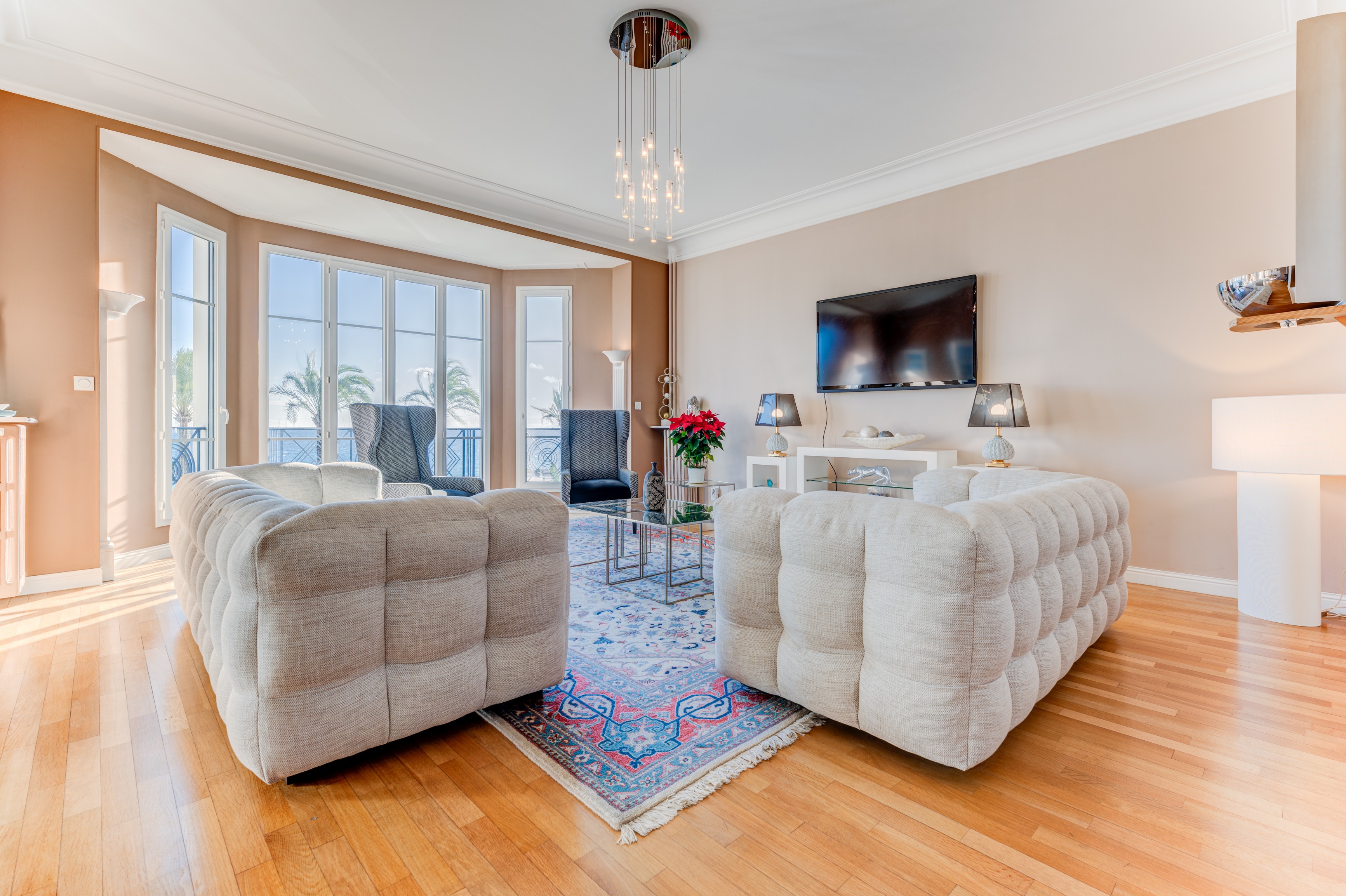 Nice - Quai des Etats Unis: Located on a high floor of a well-maintained 1939 building, just steps from the sea, public transport, and shops, this 3-bedroom, 4-room crossing apartment offers 118 sqm (113 sqm Carrez law) in excellent condition. It features an entrance hall, a fully fitted open kitchen, a laundry room, a separate toilet, a dining room, and a living room opening onto a 9 sqm terrace with a stunning sea view extending to Cap Ferrat. On the seaside, a rare master suite on the Promenade des Anglais also opens onto the terrace and includes a bathroom with both bathtub and shower, plus a toilet. On the north side are two bedrooms and a large shower room with double sinks and a toilet (with a sanibroyeur). Bright and airy throughout, this exceptional apartment is completed by a cellar in the basement of the building. An ideal property for a primary or secondary residence.